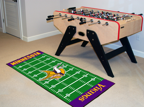 Each Fan Mats product is produced in a 138,000 sq. ft. state-of-the art manufacturing facility in Suwanee, Georgia. We use the highest quality, high luster yarn with 18oz face weight. Our mats are chromojet printed, allowing for unique, full penetration of the color down the entire tuft of yarn. A full-time ISO professional and a team of 13 full-time Quality Inspectors ensure that every mat produced meets the company’s high standards. The result is a superior quality, highly attractive Minnesota Vikings 29.5" x 72" NFL Office/House Football Field Floor Runner that any real fan has to own.