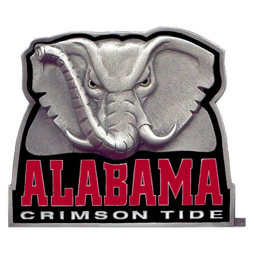 This Alabama Crimson Tide Hitch Cover is made to fit any Class III trailer hitch receiver with an opening of 2 x 2 inches. The Alabama Crimson Tide Hitch Cover is made from noncorrosive metal alloy, is hand finished and colored.