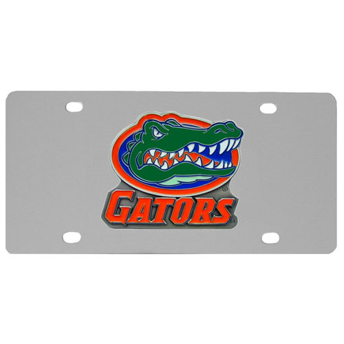 For collectors or those lucky enough to live in states that don't require a 2nd license plate. We've affixed a colorful metal logo casting to this Florida Gators stainless license plate to create a visual statement for your vehicle or bookshelf. Hardware included.