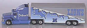 These great collectibles are 1:80 scale. They are approximately 7.75" long. They feature all die-cast metal cab with plastic trailer. Decorated with official team logos & colors from the National Football League.