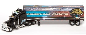 Jacksonville Jaguars fans, salute your favorite team with this Peterbilt Tractor-Trailer! Sporting a new design for 2006, this eye-catching 1:80 scale replica model weighs in at approximately 9" long and 1" wide. It's a must-have for your collection!