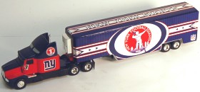New York Giants fans, salute your favorite team with this Peterbilt Tractor-Trailer! Sporting a new design for 2006, this eye-catching 1:80 scale replica model weighs in at approximately 9" long and 1" wide. It's a must-have for your collection!