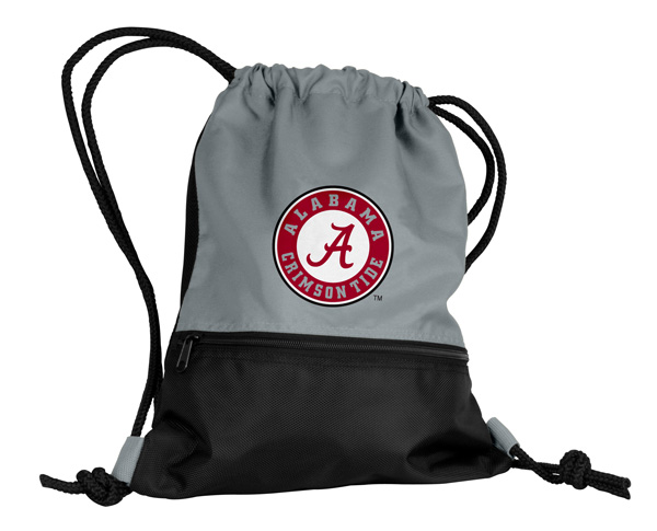 Has drawstring for shoulder straps and a screen printed Alabama Crimson Tide logo on the front.