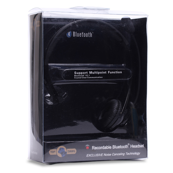 The Top Dawg Recordable Noise Canceling over the Head Bluetooth headset combines 4X anti-noise cancellation technology and digitial signal processor (DSP) with the unique ability to record important coversations and information. The Recordable Bluetooth Headset is very comfortable for extended use, and an ideal product for industrial, windy, and hard-to-hear environments. This unique recordable headband Bluetooth headset can be connected to two bluetooth devices at the same time. By use of 4X anti-noise technology, the multifunctional Bluetooth headset makes your conversation clear and smooth. Coupled with Bluetooth dongle in offices, the Bluetooth headset offers clear, hands-free chatting on SKYPE, MSN or web phones when you are on the go.