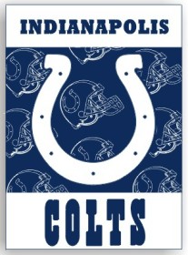 This officially licensed Indianapolis Colts banner is designed to hang vertically from an outdoor pole or inside as wall decor.