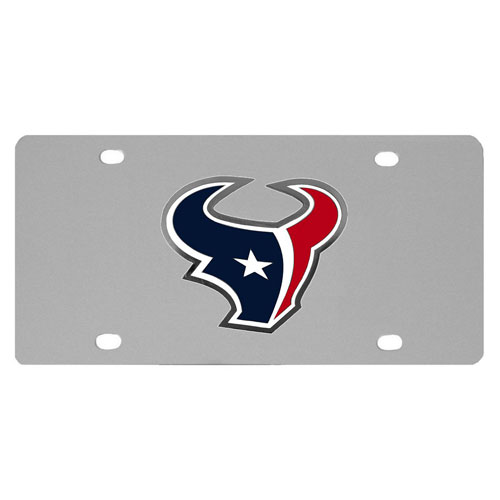 For collectors of Houston Texans or those lucky enough to live in states that don't require a 2nd license plate. We've affixed a colorful metal logo casting to the stainless license plate to create a visual statement for your vehicle or bookshelf. Hardware included.