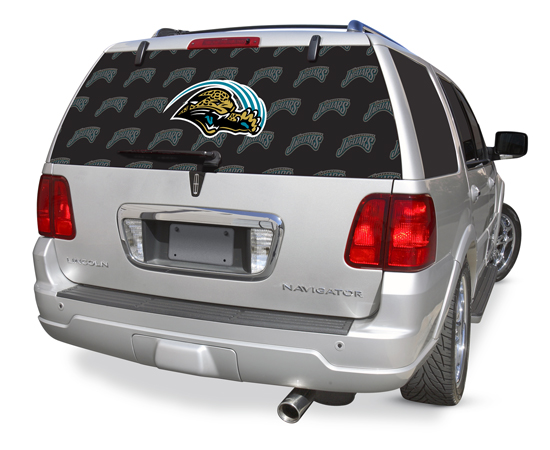 The Ultimate in Vehicle Customization!!!! Jacksonville Jaguars NFL Glass Tatz "Rearz" back window decal allows you to fully cover your back windshield for ultimate style and privacy. You can see out, but they cant's see in. Rearz are available in most major sports leagues including other NFL, MLB, NBA, & NCAA Glass Tatz.