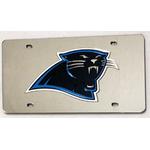 This Carolina Panthers 6" x 12" license plate is a must have for any fan! The team's logo is laser cut onto a durable mirrored acrylic license plate. Great for displaying on your car or in your sports room!