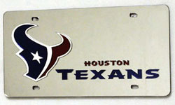 This Houston Texans Silver Laser Cut 6" x 12" license plate is a must have for any fan! The team's logo is laser cut onto a durable mirrored acrylic license plate. Great for displaying on your car or in your sports room!