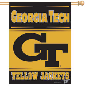 Officially licensed Georgia Tech Yellow Jackets flag. Designed to hang vertically from an outdoor pole or inside as wall decor.