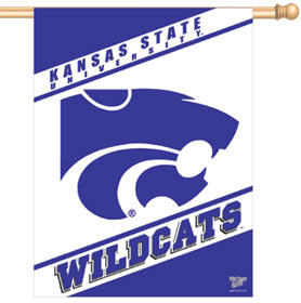 Officially licensed Kansas State Wildcats flag. Designed to hang vertically from an outdoor pole or inside as wall decor.