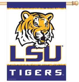 Officially licensed LSU Tigers flag. Designed to hang vertically from an outdoor pole or inside as wall decor.