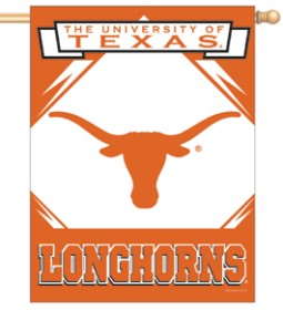 Officially licensed Texas Longhorns flag. Designed to hang vertically from an outdoor pole or inside as wall decor.