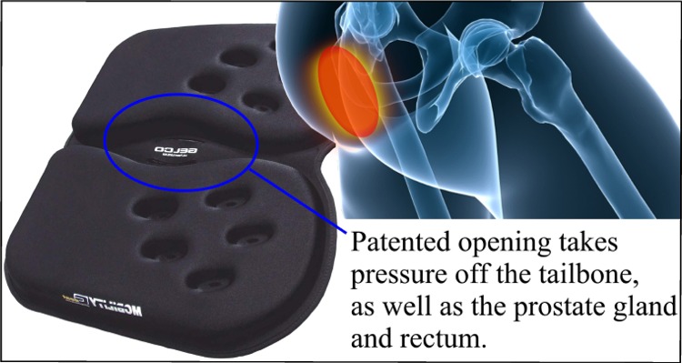- Center relieved groove eliminates soft tissue pressure and suspends the tailbone (coccyx) , which eliminates direct pressure on the spine.