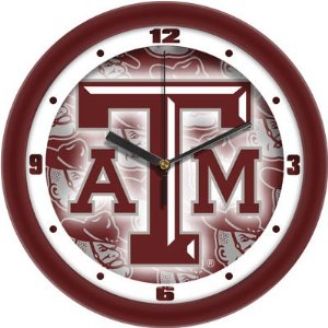 Demonstrate your school spirit at home or in the office with this NCAA wall clock. These 12" Texas A&M Aggies wall clocks feature a color coordinated, two-tone bezel that highlights your favorite NCAA team logo. The Texas A&M Aggies wall clock uses a high quality mineral glass crystal and keeps accurate time with quartz movement. The imprinted ring on this premium crystal displays the numbers with the outer bezel to proudly display your school colors. Great looking Texas A&M Aggies wall clocks from Sun Time!